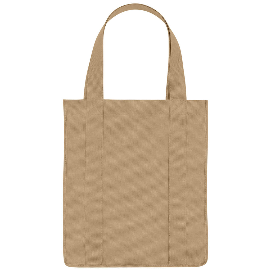 Be eco-conscious with a custom Hit Tan Non-Woven Shopper Tote Bag. This simple shopper tote is available in a variety of colors to fit your needs. The tote is the perfect size for a quick trip to pick up ingredients for your next meal. The boxy bottom means you have plenty of room for items, and then you can fold up the tote for easy storage.