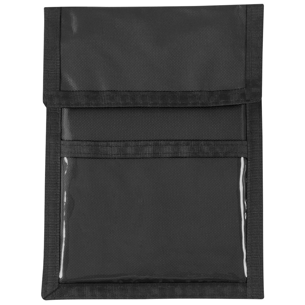Design a corporate logo for the Hit Black Nylon Neck Wallet Badge Holder to keep your ID and other small items safe and secure. These easy-to-wear holders are ideal for conferences or special organizational events when carrying a wallet or purse is inconvenient. Place your badge in the see-thru pouch and your cards or money in the other sections.