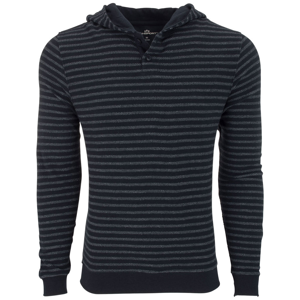 Add a screen print to the Vantage Men's Navy/White Baja Hoodie inspired by surf culture and created for a relaxed style that can go almost anywhere. The pullover is meant to create a relaxing feel whether at the beach, hiking in the woods, or heading out for a late round of golf. The bold striping is eye catching in the knit jacquard stripe made of a cotton polyester blend. A two-button placket with solid inner placket completes the look of this easy to wear and enjoy pullover. Add a custom logo to create a custom gift for yourself, family, and friends.