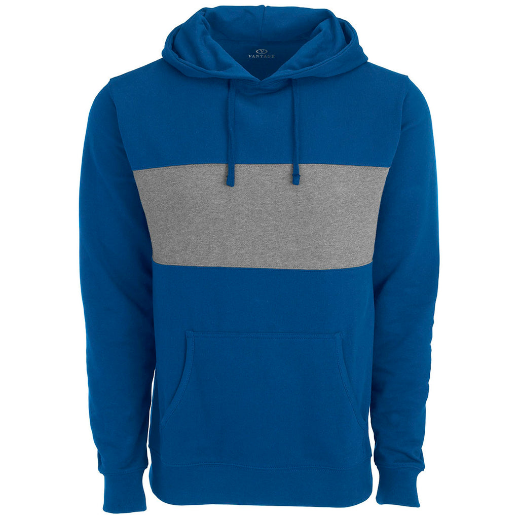 Vantage Men's Royal Premium Cotton Blocked Fleece Pullover Hoodie