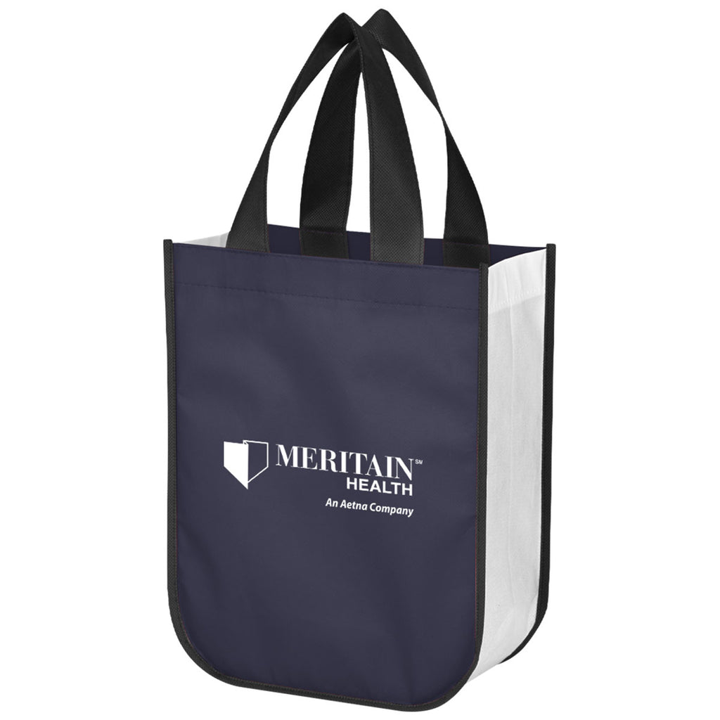 Be eco-conscious with a custom Hit Navy Shiny Non-Woven Shopper Tote Bag. This simple shopper tote is available in a variety of colors to fit your needs. The tote is the perfect size for a quick trip to pick up ingredients for your next meal. The boxy bottom means you have plenty of room for items, and then you can fold up the tote for easy storage.