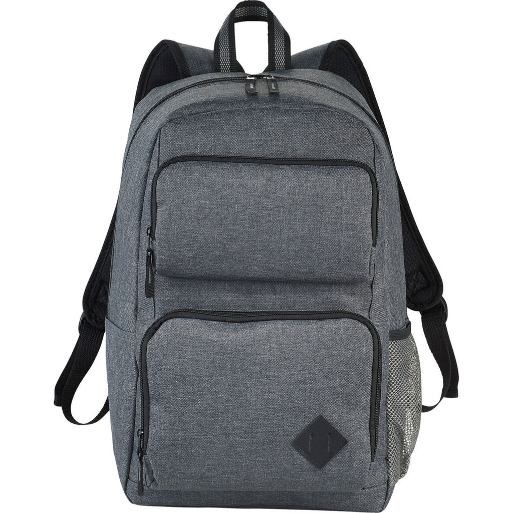The Leed's Charcoal Graphite Deluxe 15" Computer Backpack is a bag designed with the commuter in mind. It has numerous features users will appreciate when traveling to and from the office including a padded laptop sleeve, tablet pocket, several zippered pockets, and a side water bottle pocket. You'll love how your company logo stands out against the solid colour material, giving your brand maximum visibility.