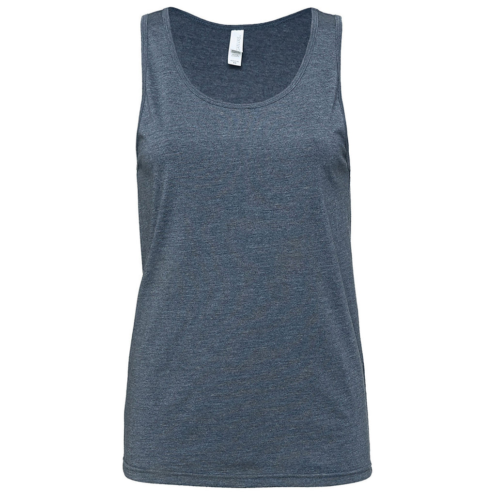 Enjoy a custom look with the versatile Bella + Canvas Unisex Heather Navy Heather CVC Tank. This simple sleeveless tank can be worn alone for an afternoon workout or layered to create an overall look. The longer length offers coverage as you hit the gym, head to the pool, or hang with friends. Place an order today.Highlights
