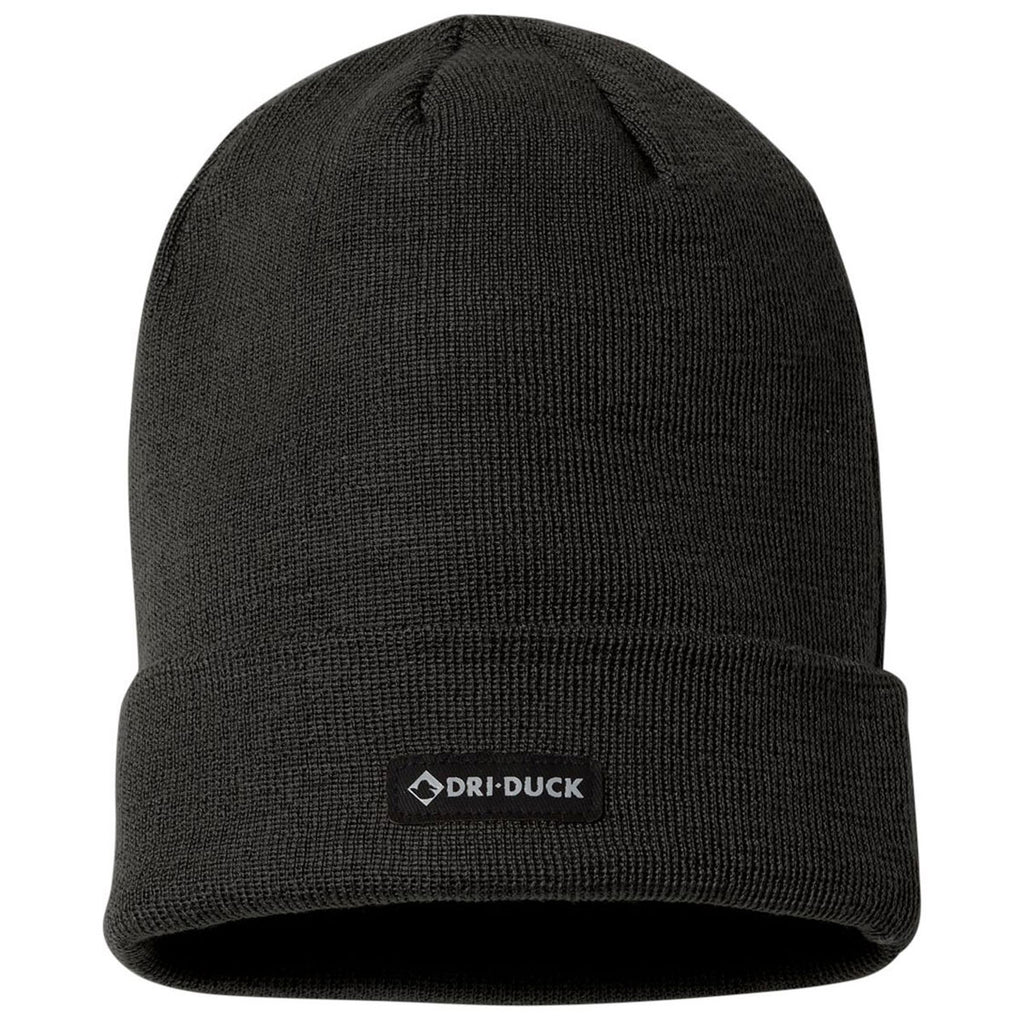 Create your custom look with the Dri Duck Black Commander Knit Beanie. This simple, straight forward beanie is made of high end Merino wool and acrylic to create a 12 inch knit, moisture wicking beanie that is as much a fashion statement as a functional piece. Your embroidery will pop against the solid, basic colors regardless of the design you choose. Add a company logo to use as workwear for those who need to be outdoors in colder weather or to create a youthful look as part of a uniform. Great for work, play, school, and daily wear as needed.