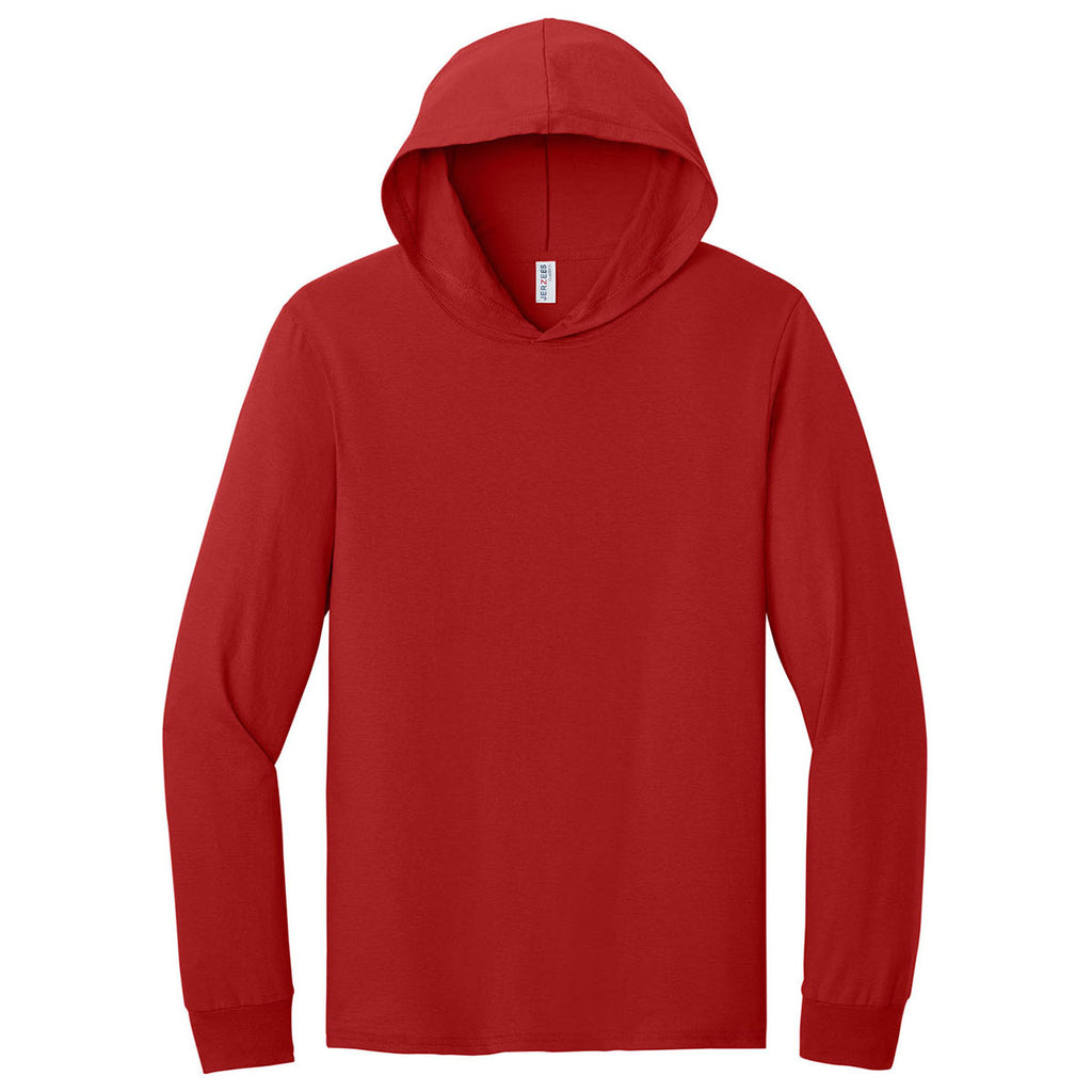 Jerzees Classics Unisex True Red Cotton Long Sleeve Hooded T-Shirt