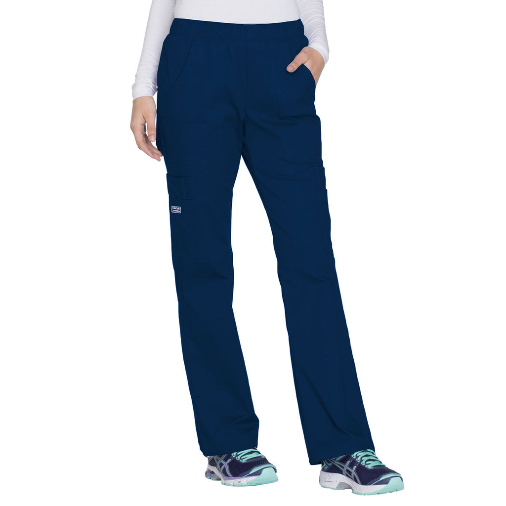 Cherokee Women's Navy Workwear Premium Core Stretch Mid-Rise Pull-On Cargo Pant
