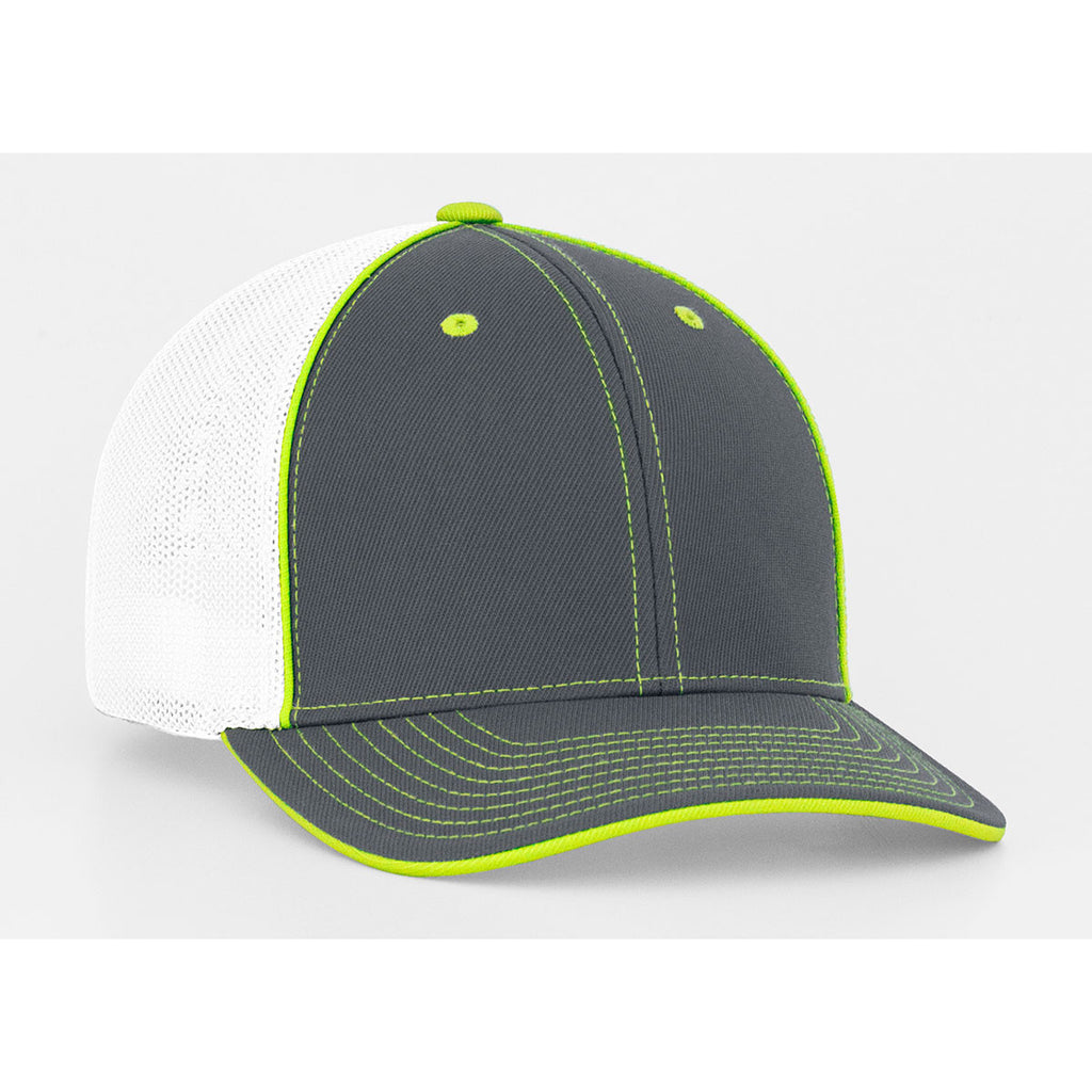 The logoed Pacific Headwear Graphite/White/Neon Yellow Universal Fitted Trucker Mesh Cap makes the ideal corporate gift for savvy managers who want to impress potential clients. Whenever you invite customer prospects to the office or plant, add a custom logo that leaves a positive impression on your guests. The comfortable cap contains a spandex Trucker mesh back to stretch and fit most size heads. Air circulates through the durable mesh to keep you cool under pressure. M3 performance fabric front panels create a structured appearance that leaves no doubt who is in charge. Logoed corporate apparel helps increase sales by getting the word about your company.Highlights