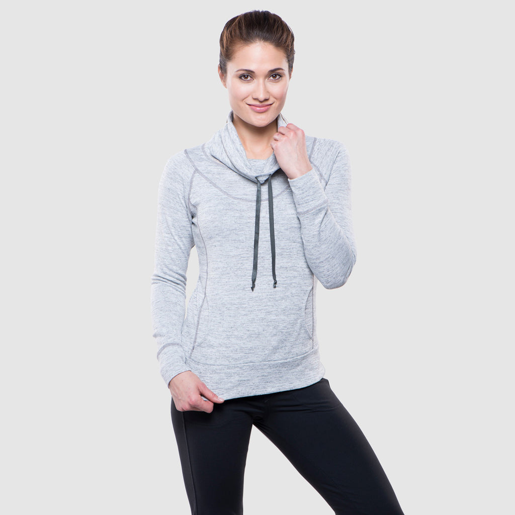 Wear the company logoed KUHL Women's Ash Lea Pullover as an outer layer or as an inner layer to protect you against frigid winter temperatures. Soft polyester includes enough spandex to enhance your mobility during cold weather home improvement projects. Rugged polyester resists the types of rips and tears that send other styles of pullovers to the trash bin. The draw cord along the cowl neck offers protection for your head against icy blasts of air. Thumbholes located at the cuffs offer protective layering for your hands. Attach your corporate logo to increase recognition for your company everywhere you go.Highlights