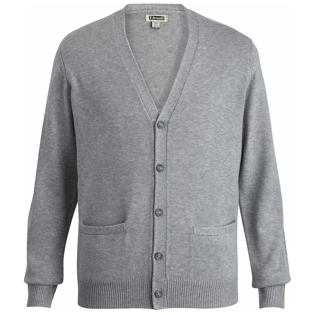 Stay warm with a custom Edwards Men's Grey Heather Jersey Knit Acrylic Cardigan With Pockets. The 100% acrylic material has a deep V-neck and five-button placket to layer over your favorite shirt or tee easily. Great for those who work in cooler environments, as a gift, or to give away as prizes. Place an order right away.Highlights