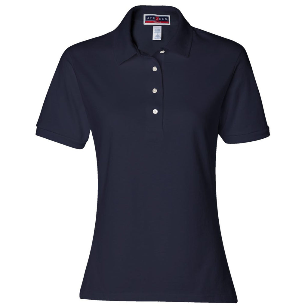The custom logo Jerzees Women's J. Navy Spotshield 50/50 Polo is a great addition to your company's stock of event giveaway items. Add your brand name to the polo and hand it out at upcoming recruiting events and trade shows.
