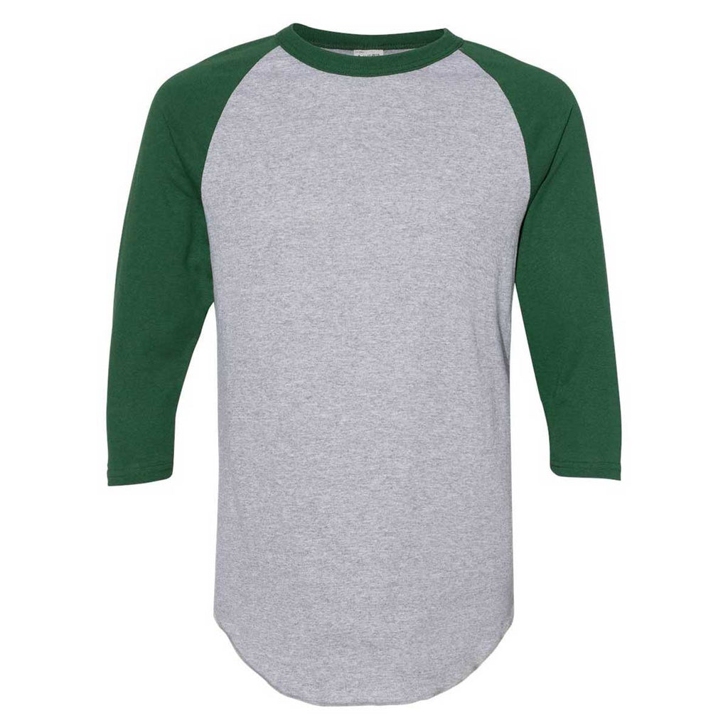 Augusta Sportswear Men's Athletic Heather/Dark Green Three-Quarter Raglan Sleeve Baseball Jersey