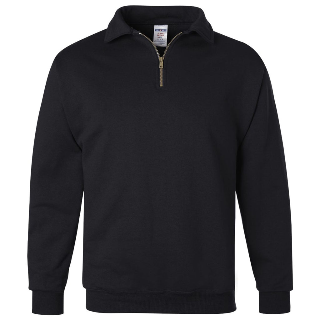 The custom logo Jerzees Men's Black Super Sweats NuBlend Quarter-Zip Cadet Collar Sweatshirt offers eye-catching style and comfort in a promotional product. With your company name added to the sweatshirt you can advertise your brand with ease. This makes an excellent event giveaway gift option.Highlights