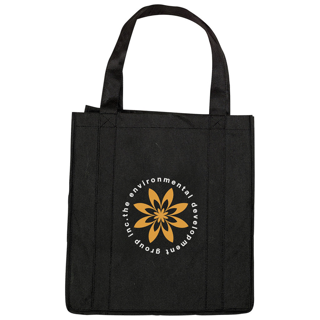 Shop with ease using a custom Good Value Black Grocery Tote. Whether you own a store, sell a specific product, or just like to show off your style, this tote is perfect for staying green and keeping your purchases organized. The reusable tote is ideal for quick trips to the market after work or school. Easily resell to encourage use in your store.Please note that there may be a delay in processing your 48-Hour order if artwork revisions are required. Orders requiring revisions or additional details will no longer qualify for 48-Hour production. The 48-Hour lead time is for production only, not delivery. You will select your shipping speed at checkout. 48-Hour orders are not eligible for cancellation. All sales are final. Learn more on our FAQ Page.