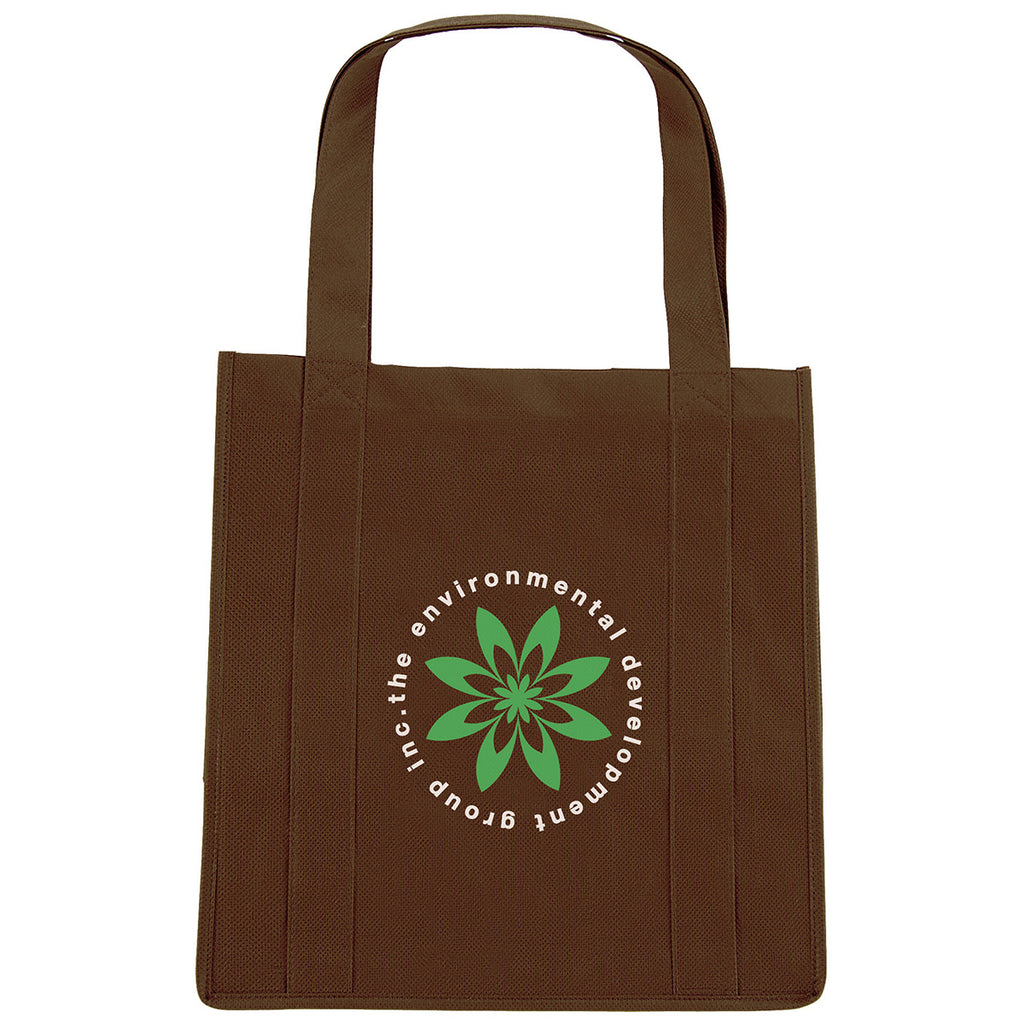 Shop with ease using a custom Good Value Chocolate Brown Grocery Tote. Whether you own a store, sell a specific product, or just like to show off your style, this tote is perfect for staying green and keeping your purchases organized. The reusable tote is ideal for quick trips to the market after work or school. Easily resell to encourage use in your store.The minimum order for this product is 250 pieces.