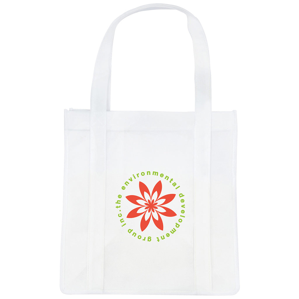 Shop with ease using a custom Good Value White Grocery Tote. Whether you own a store, sell a specific product, or just like to show off your style, this tote is perfect for staying green and keeping your purchases organized. The reusable tote is ideal for quick trips to the market after work or school. Easily resell to encourage use in your store.The minimum order for this product is 250 pieces.