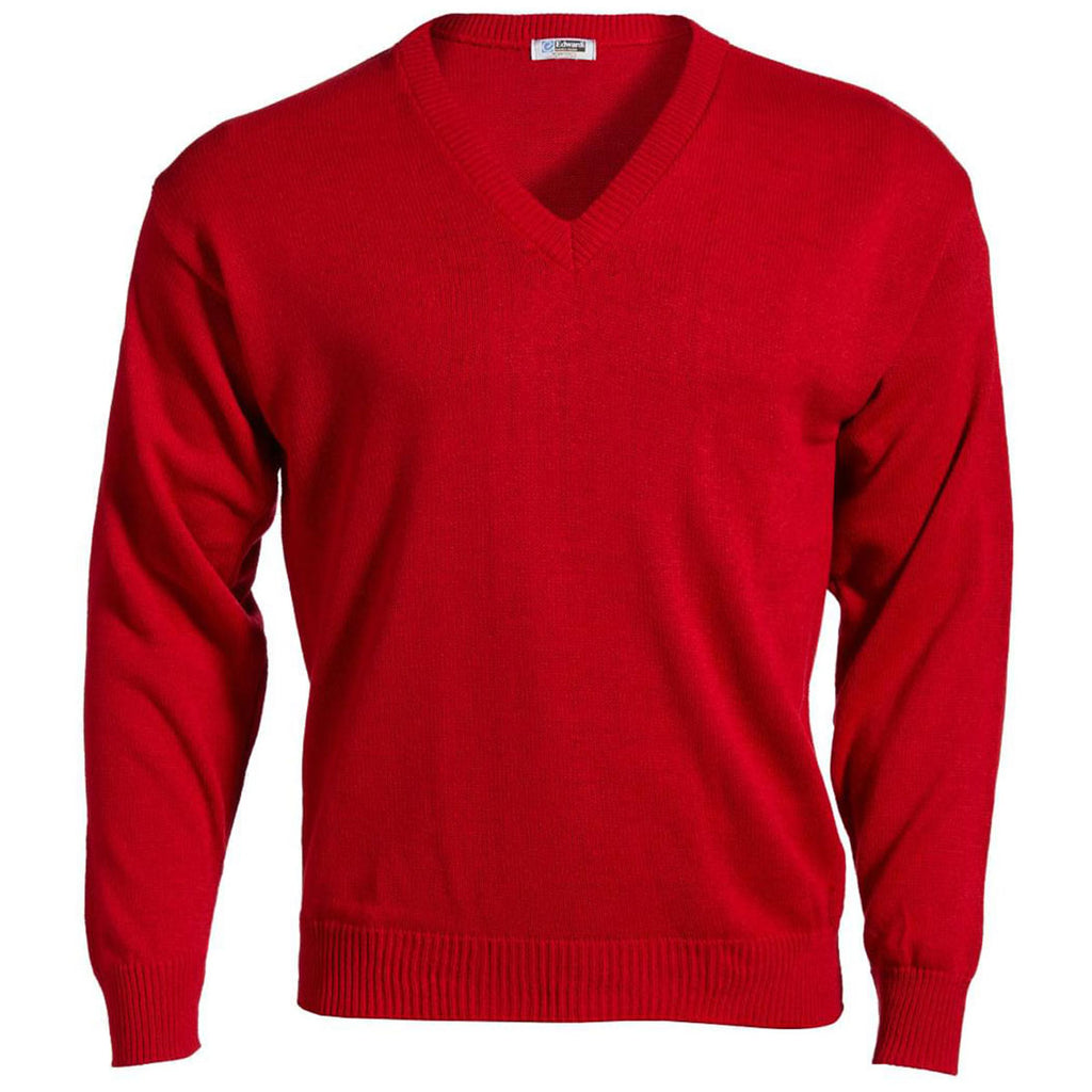 Boost your style and wardrobe with a custom Edwards Unisex Red Jersey Knit Acrylic Sweater with Tuff-Pil Plus high performance and Lo-pil performance to keep this sweater looking newer longer. Add a company logo to this gorgeous sweater to use as corporate apparel or an employee uniform. The machine washable acrylic sweater is easy to wear in a traditional fit that will keep you looking and feeling your best at work or play. Easily go from the office to dinner with friends and family without missing a beat.Highlights