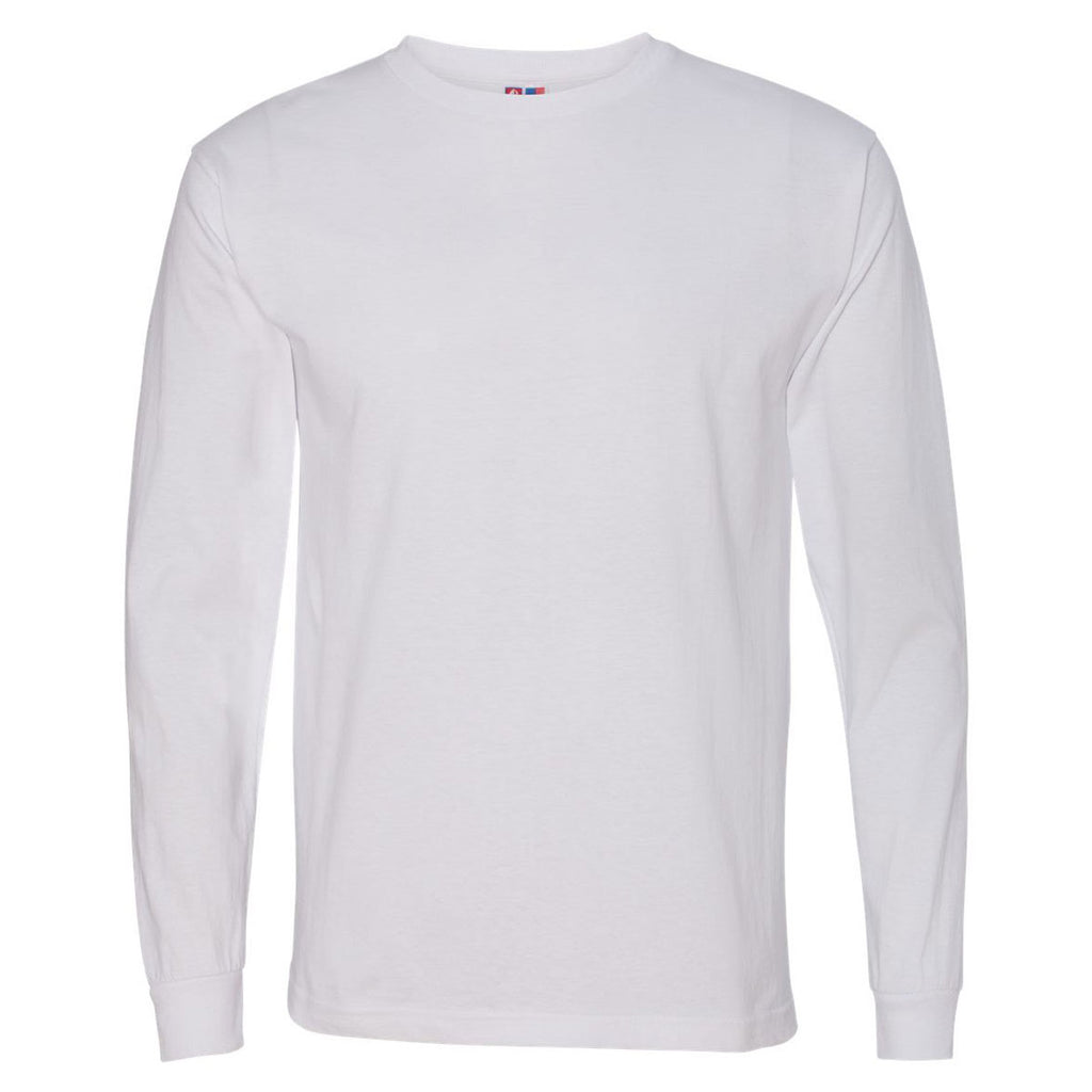 Bayside Men's White USA-Made 100% Cotton Long Sleeve T-Shirt
