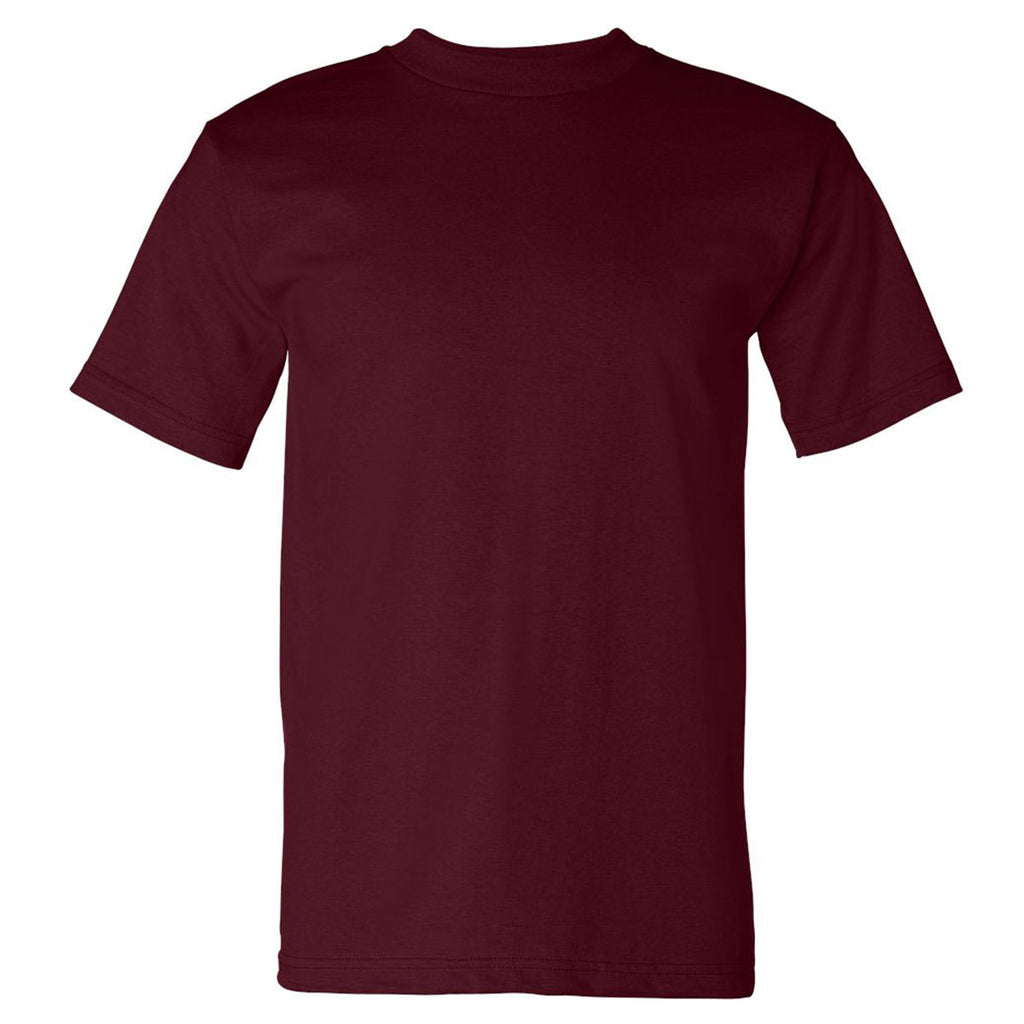 The Bayside Men's Burgundy USA-Made Short Sleeve T-Shirt is more than just a T-Shirt, especially with your company's custom logo right there on the chest. The wide collar as well as the double-needle stitched sleeves and bottom hem put this shirt a cut above the everyday T-Shirt when it comes to fashion, and it would be a sharp company uniform. Available in a wide range of colors, your logo would blend in well regardless of its design. Or you could order different colors to give your employees a full uniform wardrobe. This logoed shirt also would be practical for company events such as trade shows.Highlights