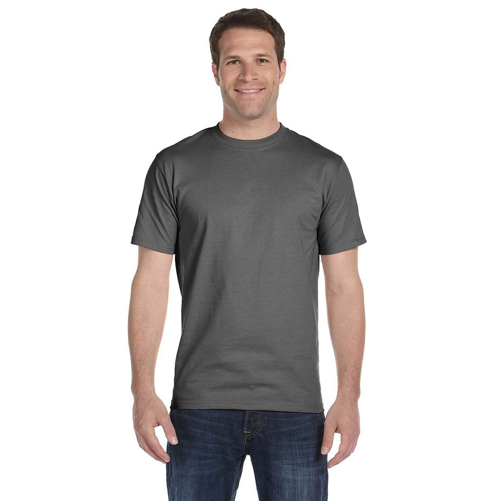 Custom logoed Hanes Men's Smoke Grey 6.1 oz. Beefy-T will be an instant favorite at all your recruiting events. Available in 44 different colors, your screen print will pop to grab the attention of passersby. Made of 100% ringspun cotton, the tag free neck label and cover seamed lay flat collar make this t-shirt the ultimate in comfort. Ideal as employee apparel for those that are working hard for the company or as a form of recognizable advertising at recruiting events. These t-shirts are so comfortable people will want to wear them daily, even outside of work. Place your order today to be prepared for the next big event.Highlights