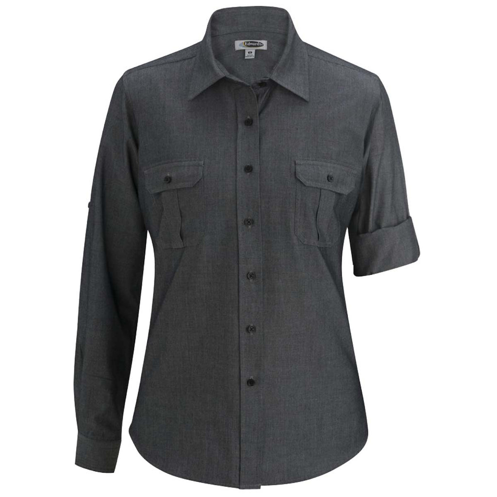 Edwards Women's Chambray Black Roll-Up Sleeve Shirt