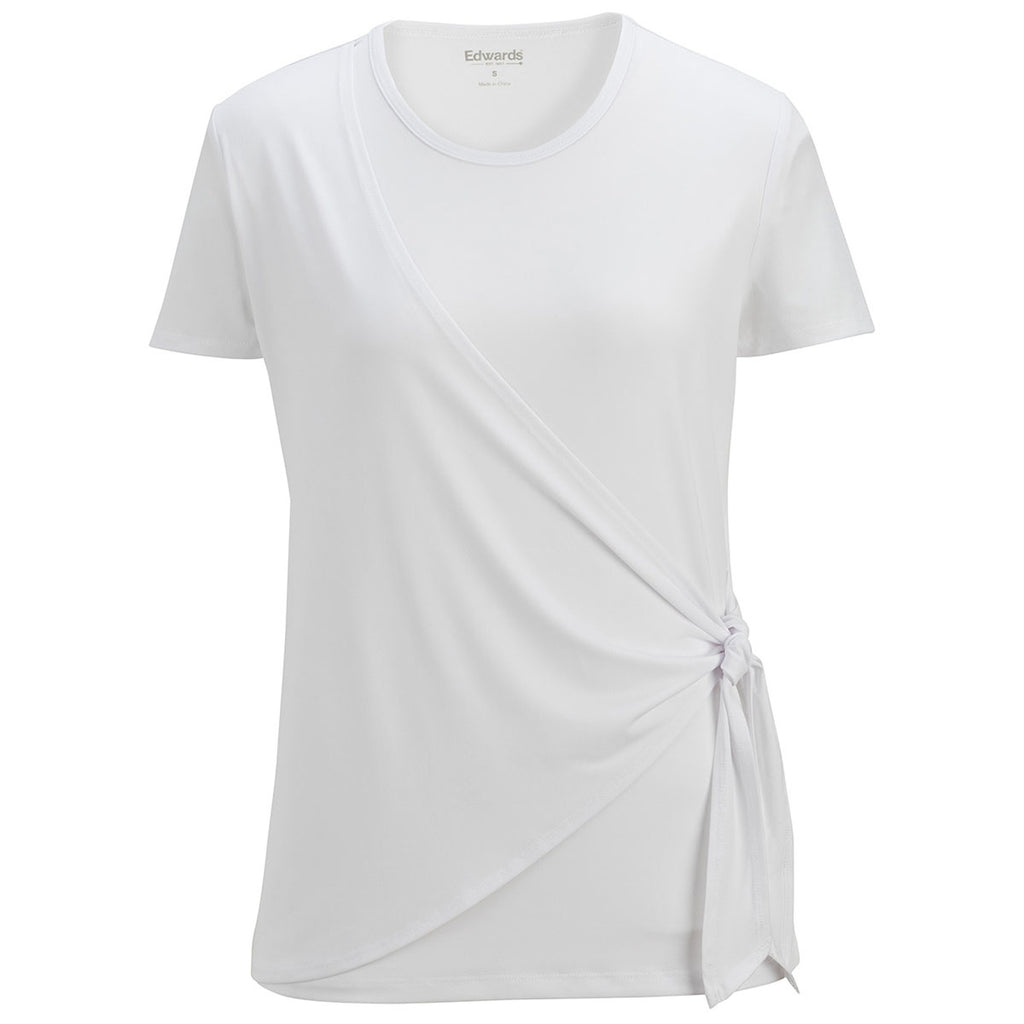 Add a custom logo to the Edwards Women's White Soft Wrap Blouse for a versatile look that can go almost anywhere. The wrap blouse is great for the office with its comfortable styling and universally flattering design, but it can also take you out for a night on the town with friends. Place an order soon; these will go fast.Highlights