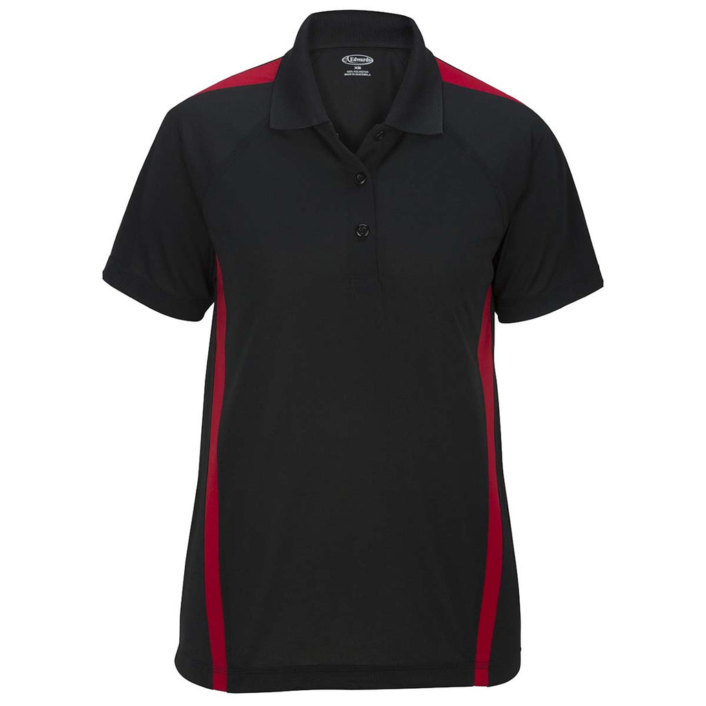 Edwards Women's Black with Red Snag-Proof Color Block Short Sleeve Polo