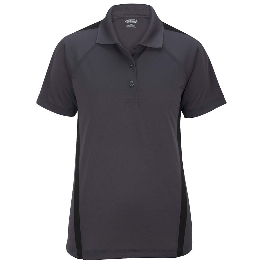 Edwards Women's Steel Grey with Black Snag-Proof Color Block Short Sleeve Polo