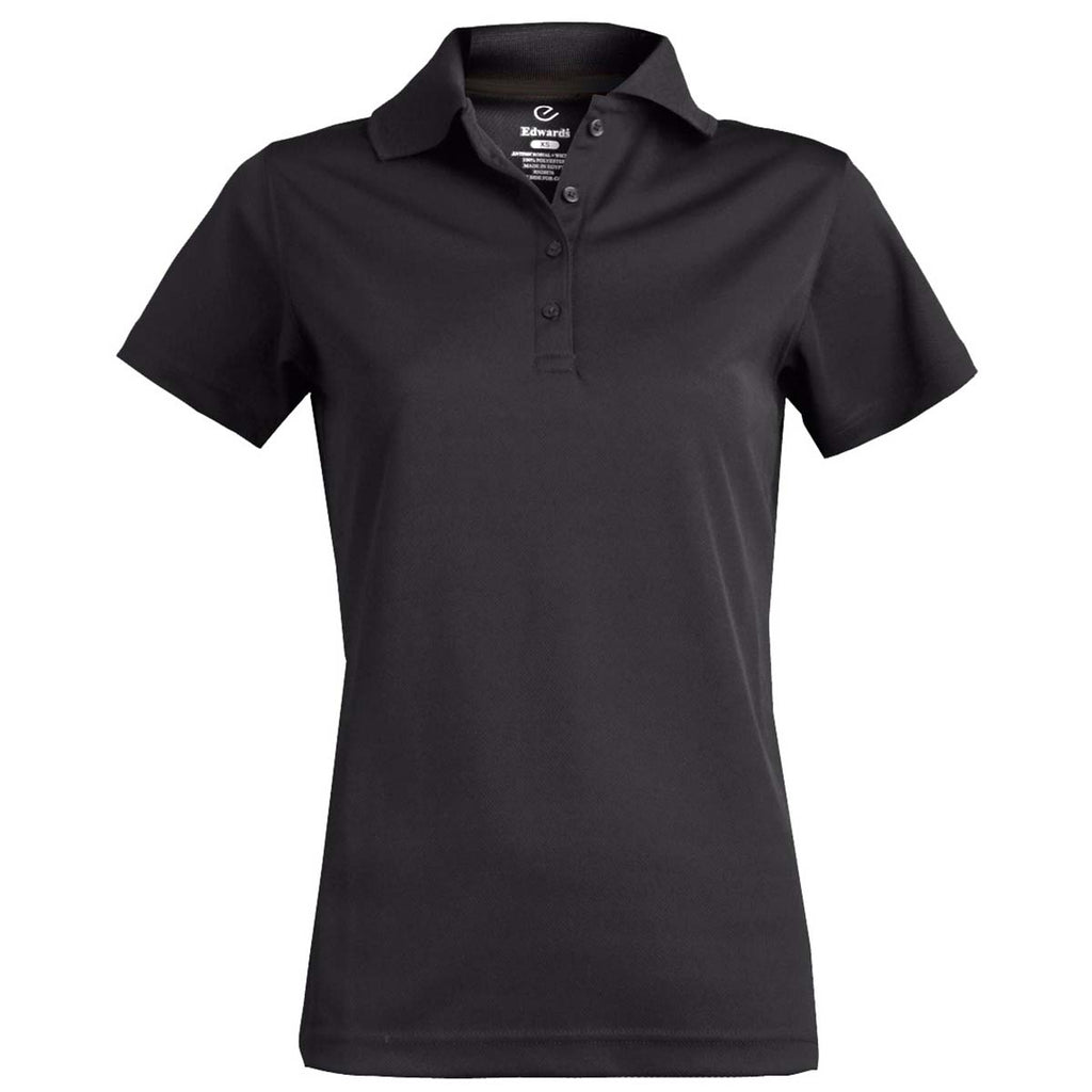 Hit the back nine in this custom Edwards Women's Steel Grey Hi-Performance Mesh Short Sleeve Polo. Made from 100% polyester, this short sleeve mesh weave polo with feminine silhouette wicks moisture from your body when you are working hard. Ideal as employee apparel or even corporate uniforms for those who need them, these polos will carry your corporate embroidery with style and pride. The lightweight fabric offers an antimicrobial shield and soil release so you can always look your best, even when working outdoors. The snag, fade, shrink, and wrinkle resistant fabric can be machine laundered for easy care and to have available for new employees.Highlights