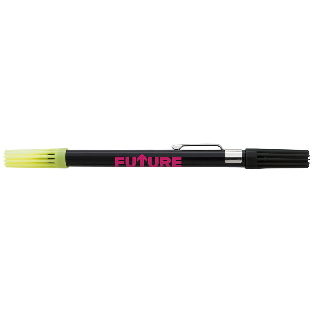 The custom logo DriMark Black/Back Double Header Highlighter Ball Pen Combo is an ideal promo product to buy in bulk quantity. You can have your company name screen printed onto the item and hand it out at upcoming trade shows and recruiting events.