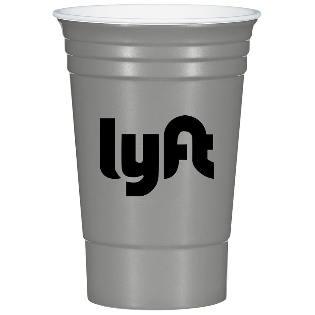 Hit Metallic Grey/White The Cup with a custom logo will keep your party going. This silkscreen custom cup is perfect for big events like receptions, family reunions, or tailgating, so everyone knows the host or sponsor. The large 16-ounce size is sturdy, reusable, and available in various color options. Serve your signature drink, or let people choose their own to keep the fun going.