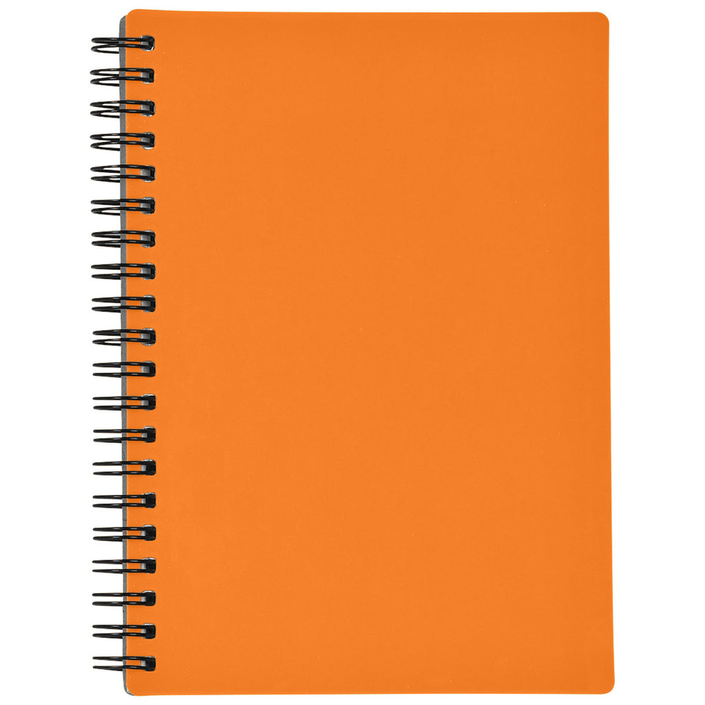 Hit Orange Rubbery Spiral Notebook with a corporate logo is a convenient way to take notes and stay organized. The 70 page lined notebook has a PVC cover and cardboard back to showcase your brand. Ideal for use in large meetings, to use at recruitment events, or offer to new clients as a welcome.
