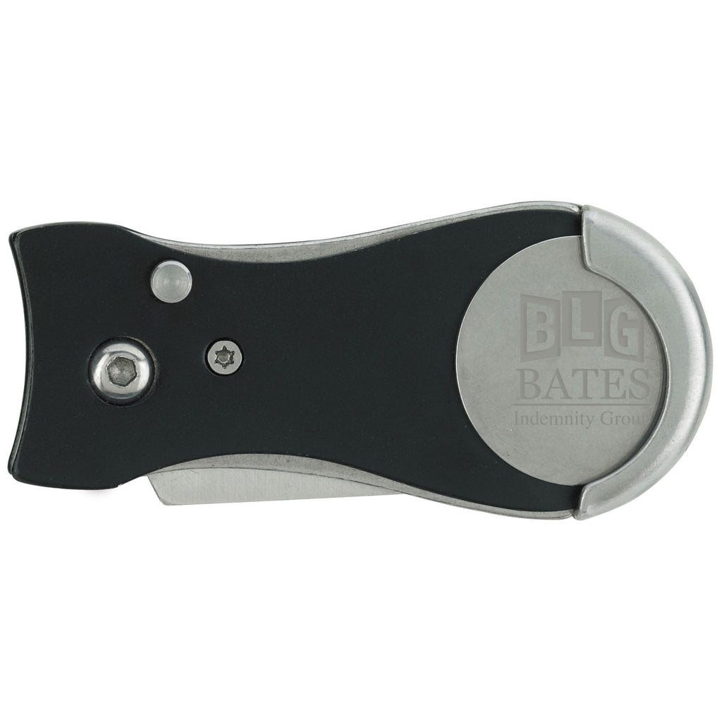Bold color options make this BIC Black Flip Divot Tool & Marker the perfect golf accessory on which to add your company's custom logo or design. Made from high-quality metal, its switchblade action allows you to easily access the divot tool while out on the course. The included ball marker will also come in handy.