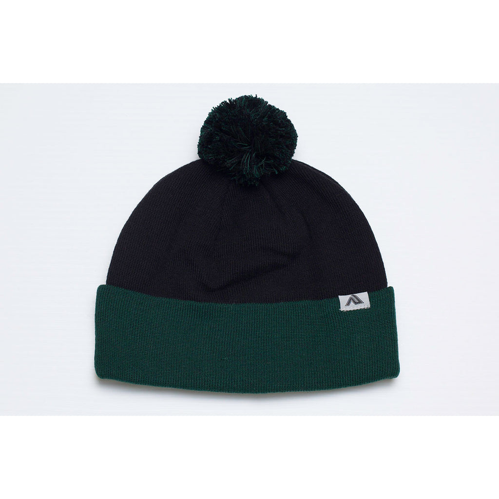 Pacific Headwear Black/Dark Green Loose Fit Pom-Pom Beanie
