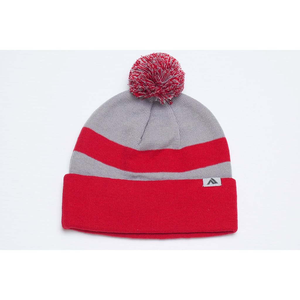 Pacific Headwear Red/Silver/Red Loose Fit Pom-Pom Beanie