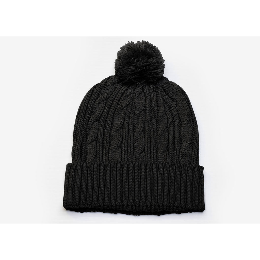 Pacific Headwear Black Cable Knit Pom-Pom Beanie
