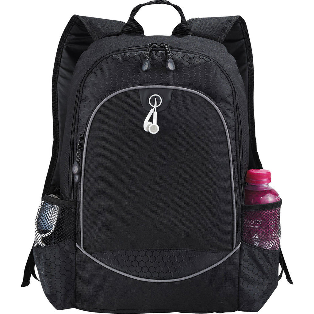 The Leed's Black Hive 15" Computer Backpack is an ideal corporate gift item for today's technology-savvy employees and clients. It features a main compartment with a laptop sleeve and padded area for an iPad or tablet. There is ample room for your company logo on the large front zippered pocket and recipients will appreciate the two side pockets that can hold small items like sunglasses or a water bottle.