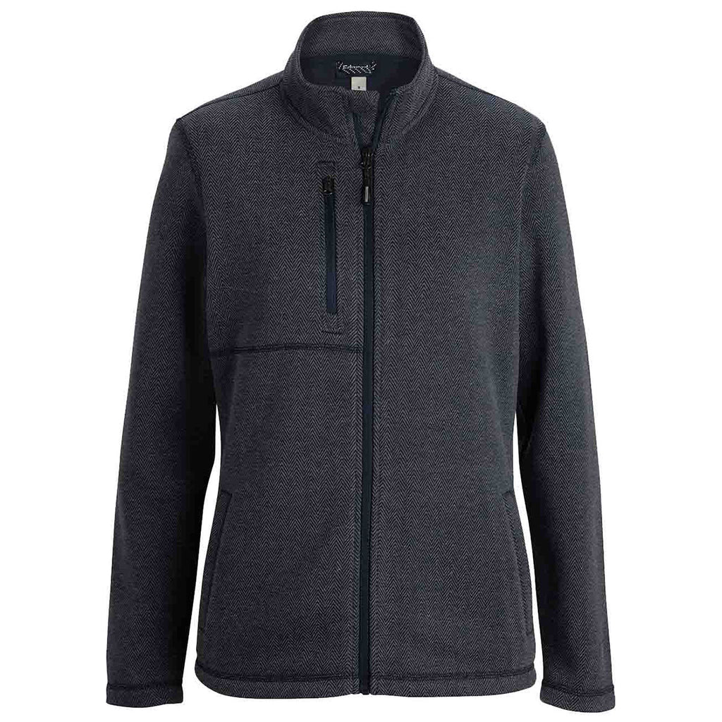 Choose a custom logo for the Edwards Women's Navy Herringbone Sweater Knit Jacket with full zip front. The polyester and fleece combination will keep you warm whether camping, hiking, or commuting each morning. The vertical zippered pocket is great for small items when going for a run and handwarmer pockets offers extra room. Place an order today.Corresponding Men's Style: Edwards Men's Navy Herringbone Sweater Knit Jacket