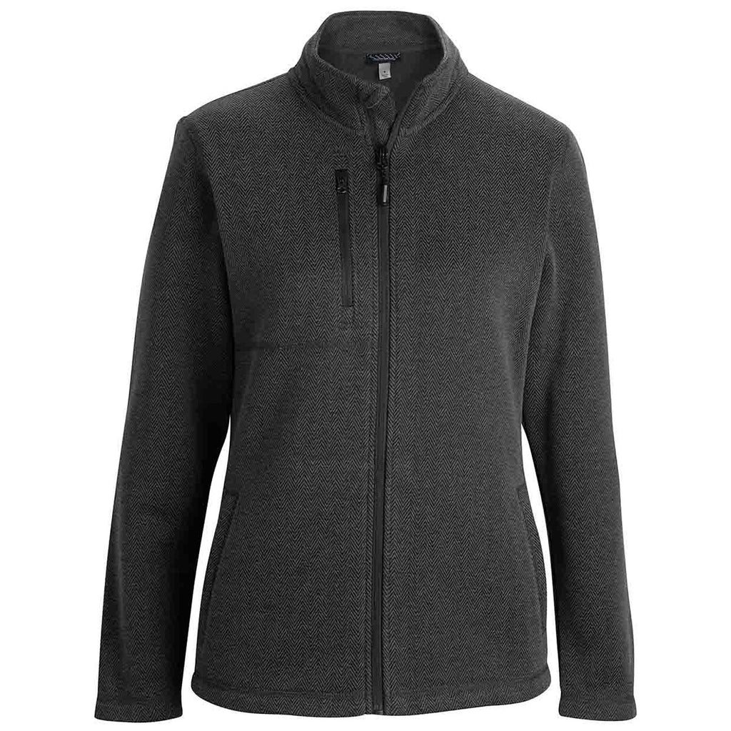 Choose a custom logo for the Edwards Women's Steel Herringbone Sweater Knit Jacket with full zip front. The polyester and fleece combination will keep you warm whether camping, hiking, or commuting each morning. The vertical zippered pocket is great for small items when going for a run and handwarmer pockets offers extra room. Place an order today.Corresponding Men's Style: Edwards Men's Steel Herringbone Sweater Knit Jacket