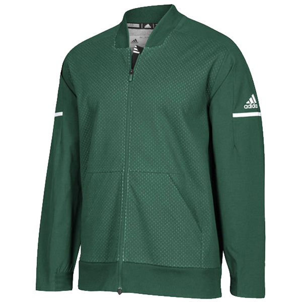 adidas Men's Dark Green/White Squad Bomber Jacket with custom design offer a vintage feel in an updated look. Created from recycled polyester and cotton on the body, this bomber jacket truly is the bomb. Whether you want to get noticed at the next athletic related event or just want a jacket to show off going to and from the office, this custom embroidered jacket is a must have. Offer these bombers as high end corporate gifts with water resistant sleeves and zippered pockets for easy wear. Place an order for one or for many to make a real statement that will get you noticed.