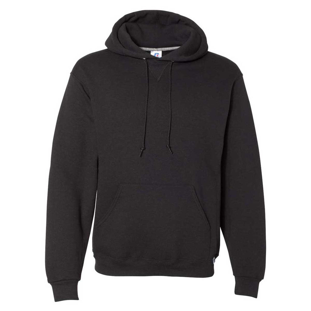 Enjoy the day in a screen print Russell Athletic Men's Black Dri Power Hooded Pullover Sweatshirt. This comfortable, easy to wear pullover sweatshirt has Dri Power moisture management properties with a simple drawstring hood. Add a custom logo to use as warm up gear for athletic teams or to promote your company in a unique way. Great for everything from tailgates to working out to chilling with friends. Add a unique design to give as custom gifts for any occasion or just add to your personal wardrobe.Highlights