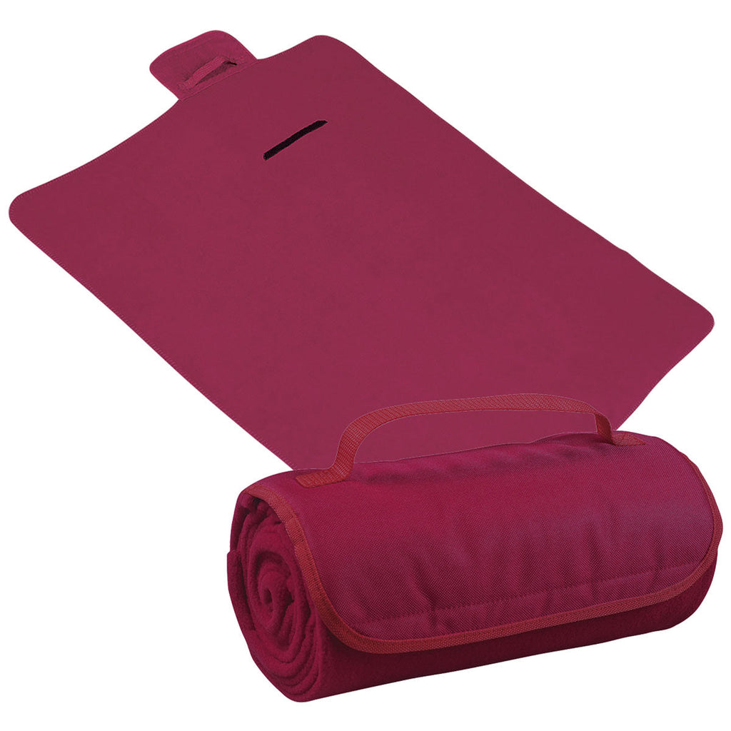 The Hit Maroon Roll-Up Blanket with a corporate logo is ideal for beach resorts, cruise ships, or general travel. The large, polyester fleece blanket with a matching color flap easily folds within itself using a hook and loop closure. The handle means this can be easily grabbed and moved to the perfect chair or spot on the beach and then surface washed and reused.