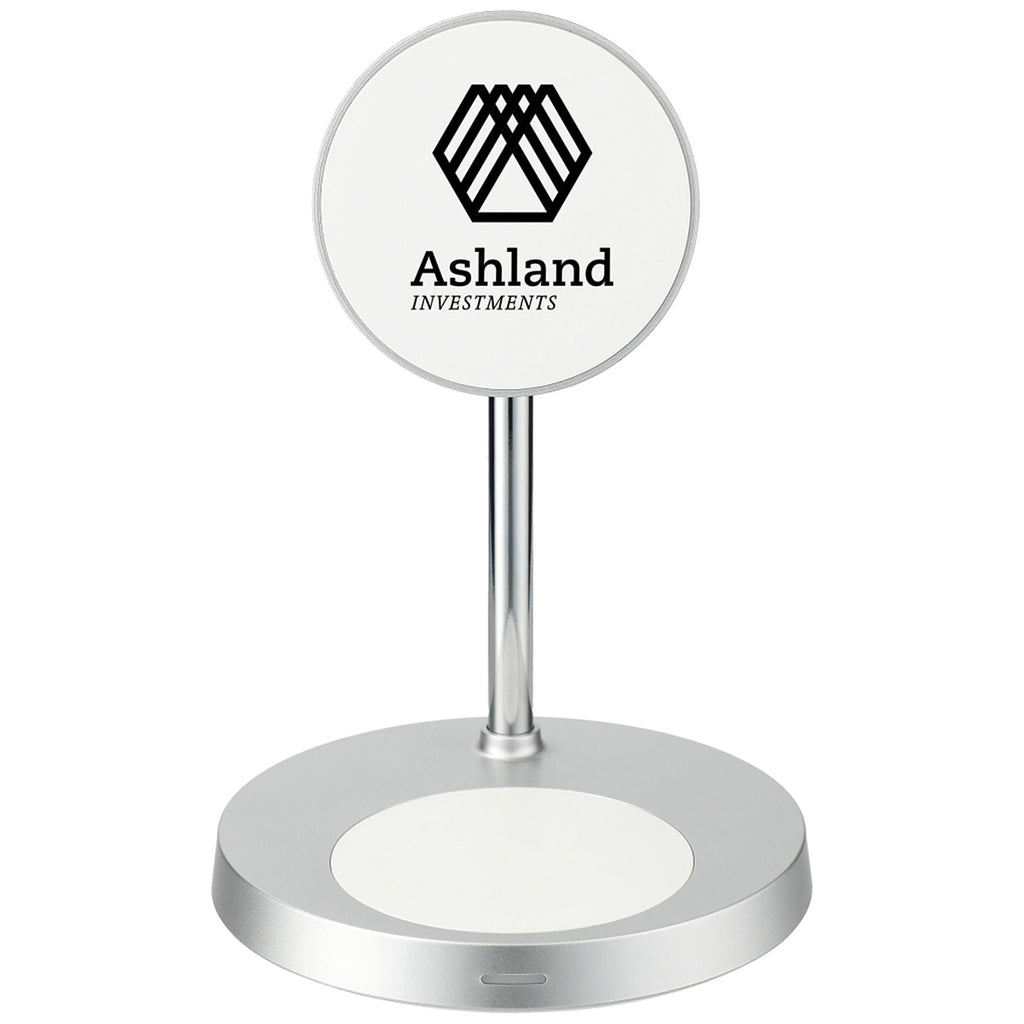 Leeds Silver MagClick Dual Fast Wireless Charging Stand with Base