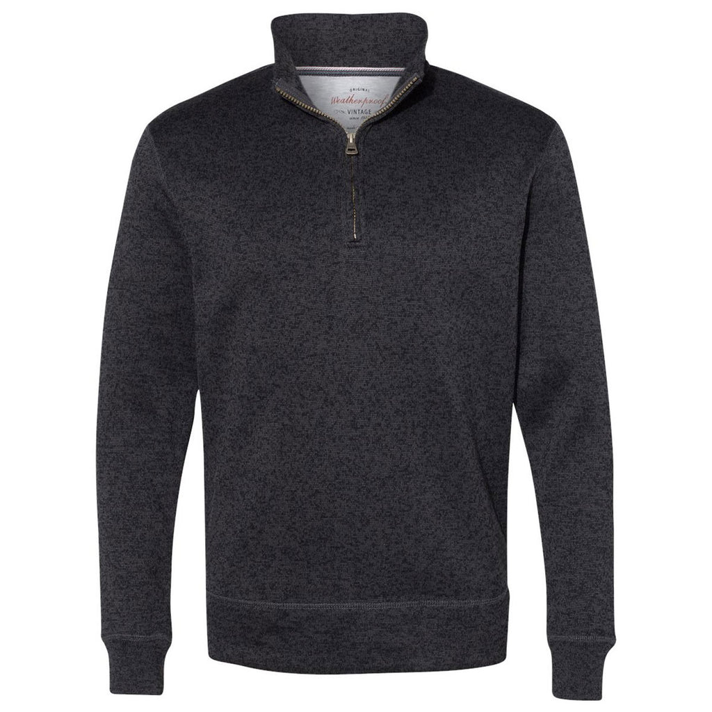 The company logo Weatherproof Men's Asphalt Sweaterfleece Quarter-Zip Henley offers cool and casual comfort in one fashionable men's top. The features you'll find with this men's clothing item include a well-constructed 100% polyester material, two-tone sweater fleece style, quarter-zip fashion, and contrast stitching detail. With your company logo added to the front in embroidery, you have the perfect corporate apparel gift to hand out at trade shows or employee apparel gift to provide to your faithful and hardworking employees. The sweater fleece is available in three aesthetically-pleasing color tones.Highlights