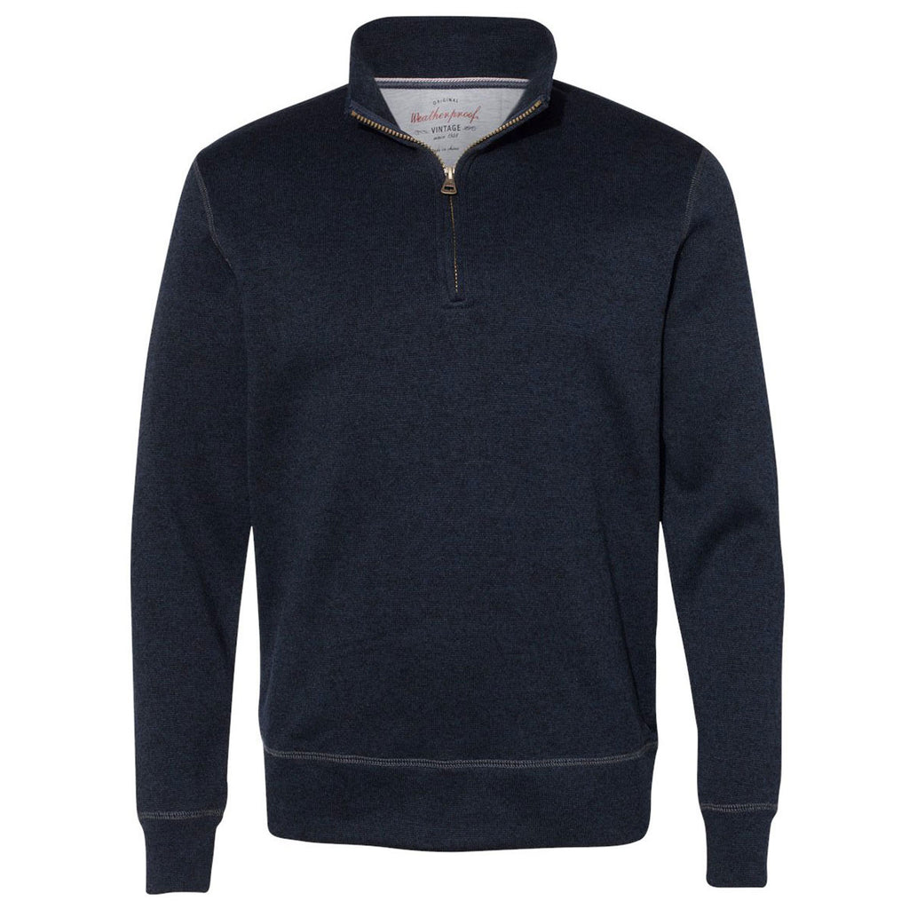 The company logo Weatherproof Men's Navy Sweaterfleece Quarter-Zip Henley offers cool and casual comfort in one fashionable men's top. The features you'll find with this men's clothing item include a well-constructed 100% polyester material, two-tone sweater fleece style, quarter-zip fashion, and contrast stitching detail. With your company logo added to the front in embroidery, you have the perfect corporate apparel gift to hand out at trade shows or employee apparel gift to provide to your faithful and hardworking employees. The sweater fleece is available in three aesthetically-pleasing color tones.Highlights