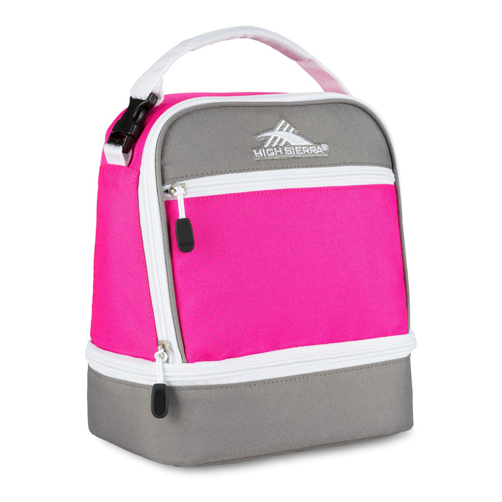 Packing a wholesome lunch is an important part of our busy lifestyle. The High Sierra Flamingo Stacked Compartment Lunch Bag makes it easy for your company's employees to take leftovers or healthy snacks to work. It boasts a handy drop bottom compartment for easy access to heavier items without the work of digging through top layers. An insulated lining keeps your lunchtime treats fresh. Custom logoed lunch totes are also great giveaways for hospitality patrons.Highlights