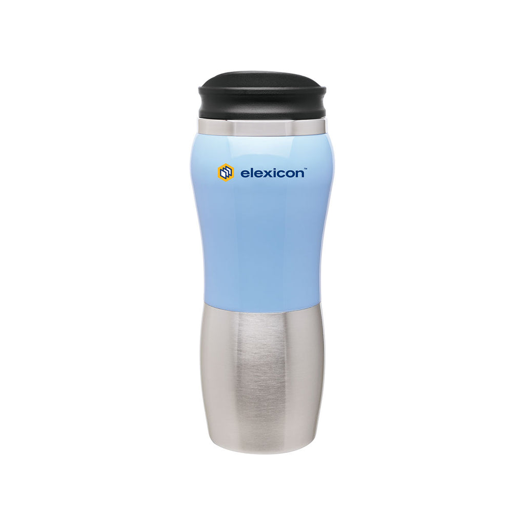 This acrylic-accented ETS Sky Blue Maui Fusion Stainless Steel Tumbler 14 oz flaunts a glossy body topped with a push-on swivel lid. Its interior is lined with foam insulation that can hold heat for hours. Lightweight, sleek, and sturdy, this tumbler will make perfect corporate giveaway and can be customized with logo for corporate gift or mementos.