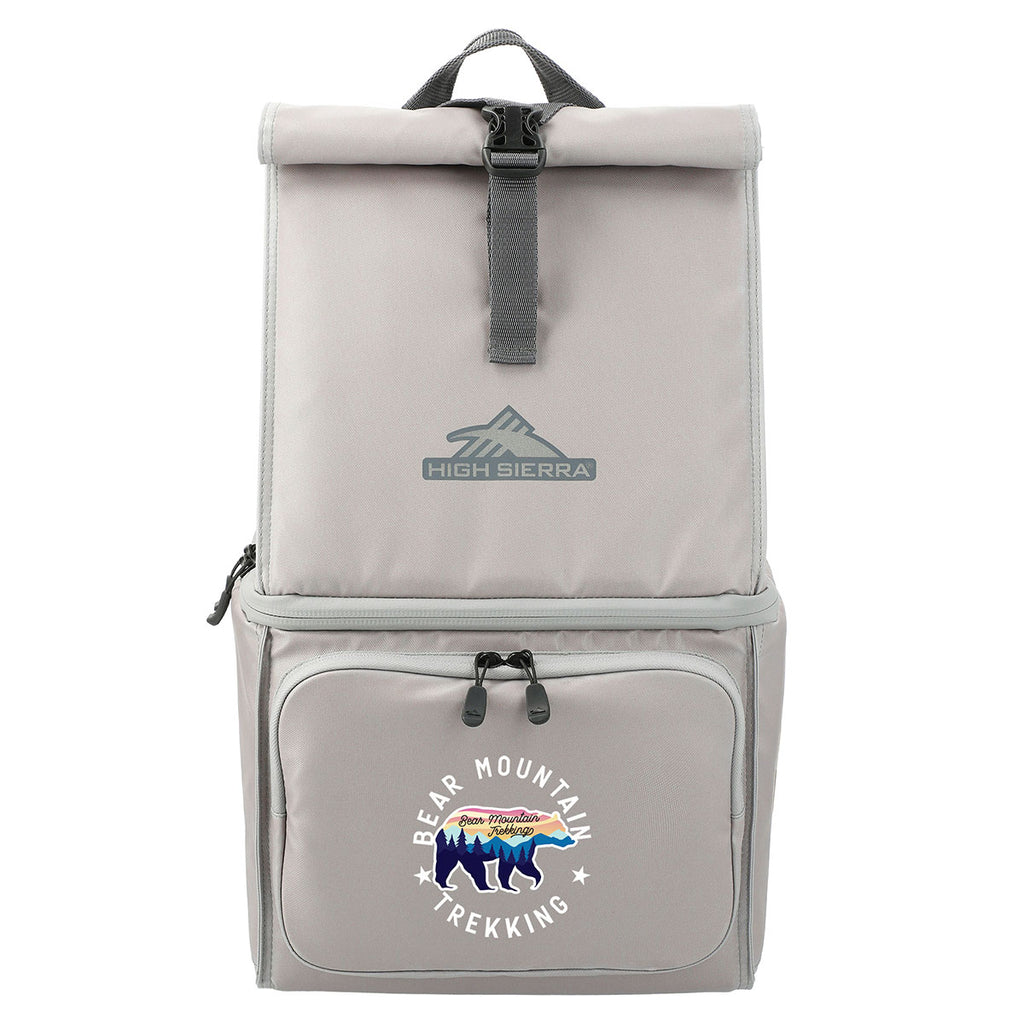 The High Sierra Grey 12 Can Backpack Cooler makes it easy to spread the word about your brand at any outdoor event. A sleek, sophisticated exterior will highlight your company's custom logo when it's added to this awesome accessory. It includes an insulated main compartment as well as additional pockets to keep additional items organized.The minimum order for this product is 6 piece.