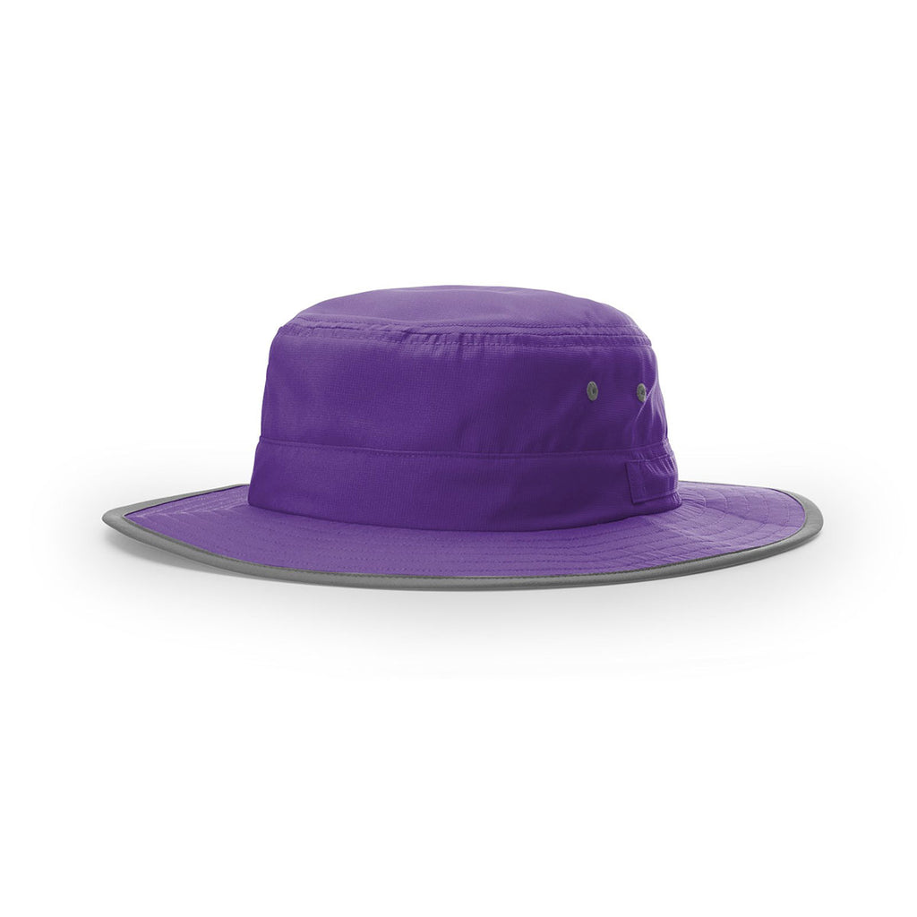Active lifestyles demand active headwear. The Richardson Purple Sideline Wide Brim Sun Hat is made from lightweight performance fabric and engineered with R-ACTIVE tech. Don't let bright rays keep you from enjoying a sunny day with this hat featuring a wide brim to block unwanted rays and powered with UPF protection. Make the best impact on trade show visitors or event attendees by giving away this Wide Brim Sun Hat personalized with your company's logo and name.The minimum order for this product is 48 pieces.
