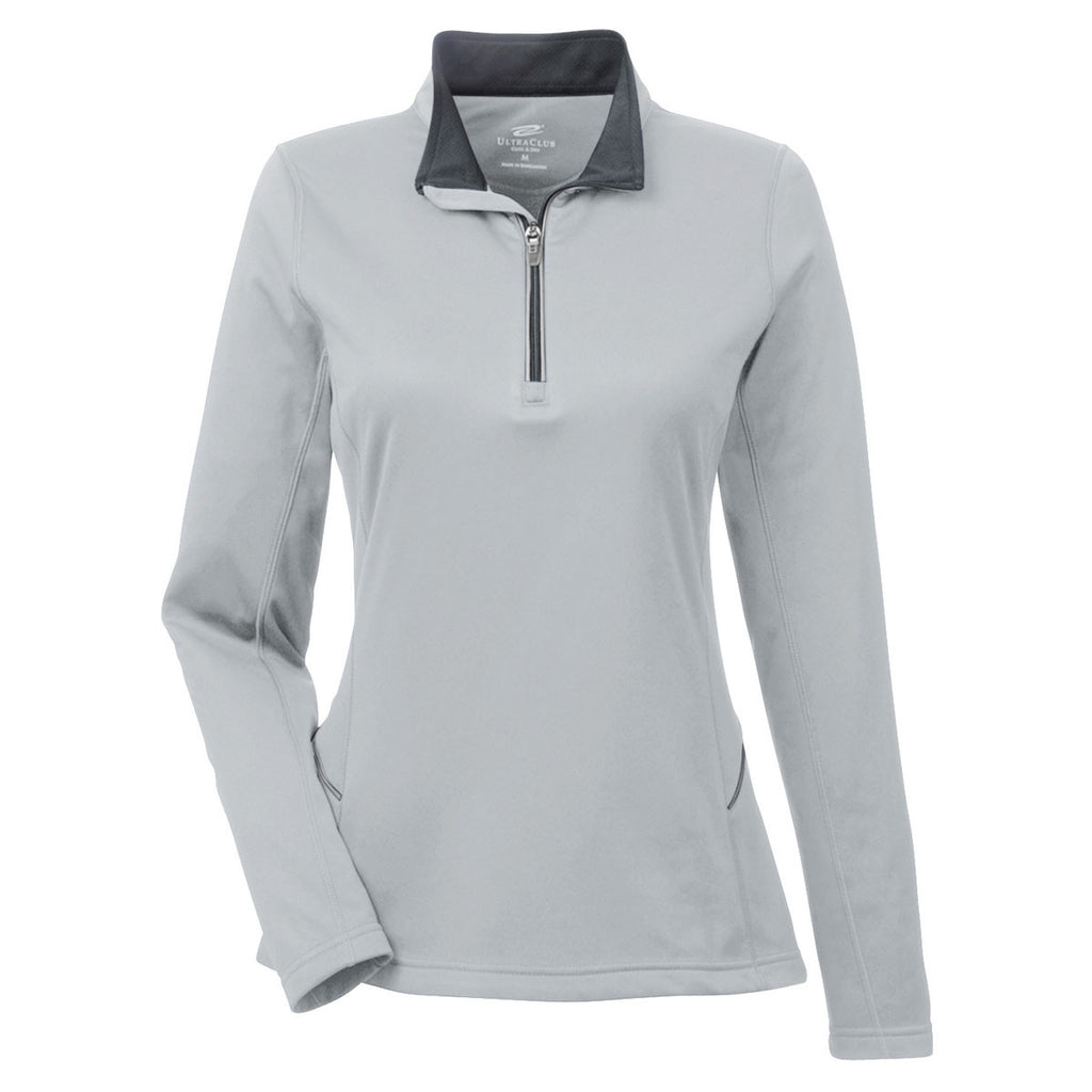 UltraClub Women's Grey Cool & Dry Sport Quarter-Zip Pullover