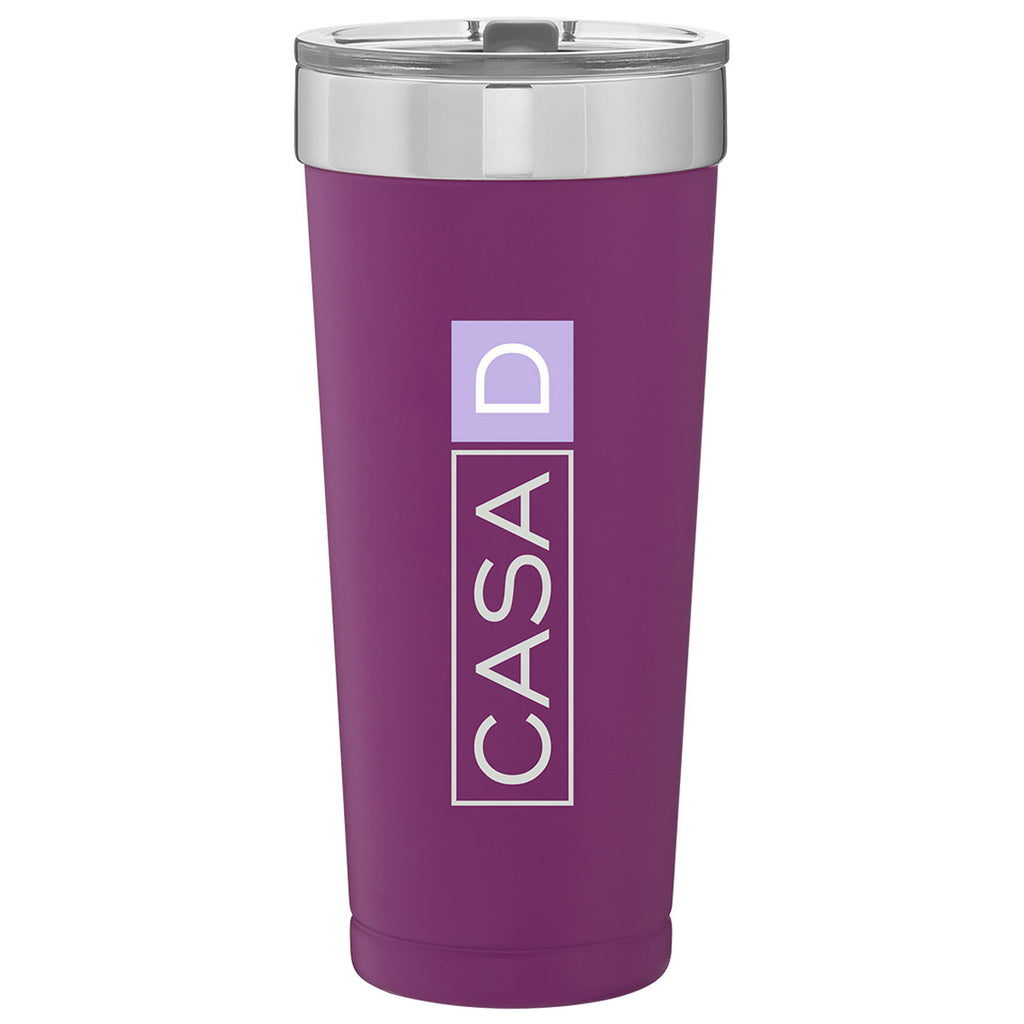 The ETS Matte Grape 20.9 oz Polar Tumbler is the perfect accessory! This tumbler features copper vacuum insulation, a high polish accent, clear acrylic push-on swivel lid, and a powder coated finish. You company logo can be printed on this tumbler. This also comes with a gift box, so it's great for company giveaways, trade shows, and new employee welcoming gift.The minimum order for this product is 48 pieces.
